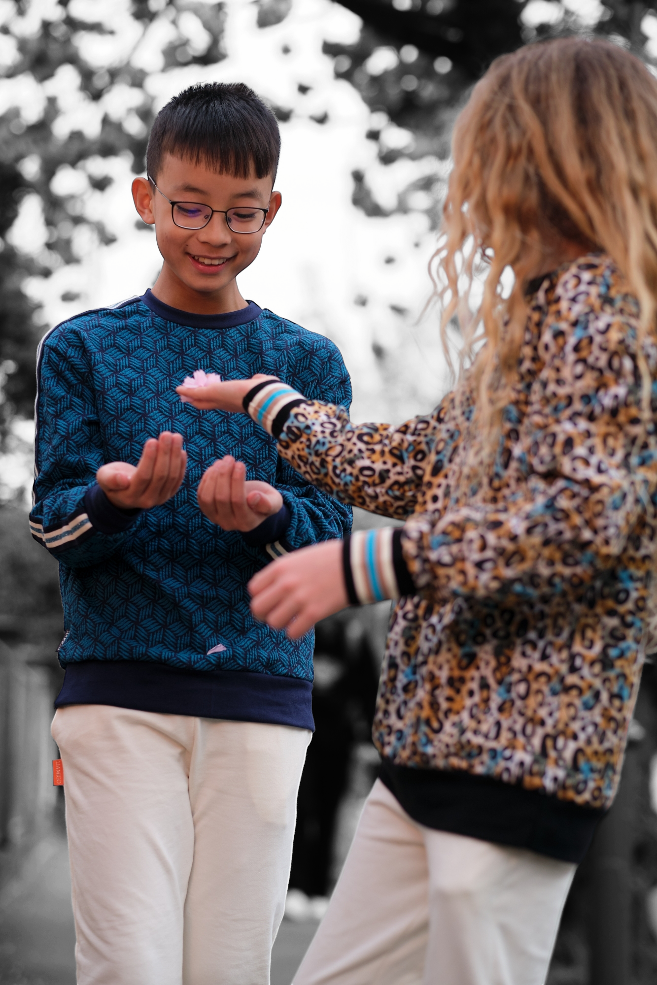 Träume, Abenteuer und eine Prise Magie – all das steckt in unserem neuen KaleidoKids 3D Sweater . Mit seinem tiefdunklen Blau, petrolfarbenen Akzenten und einem glitzernden Streifen, der die Milchstraße widerspiegelt, wird dieser leichte und atmungsaktive Sweater zum absoluten Lieblingsstück deines Kindes