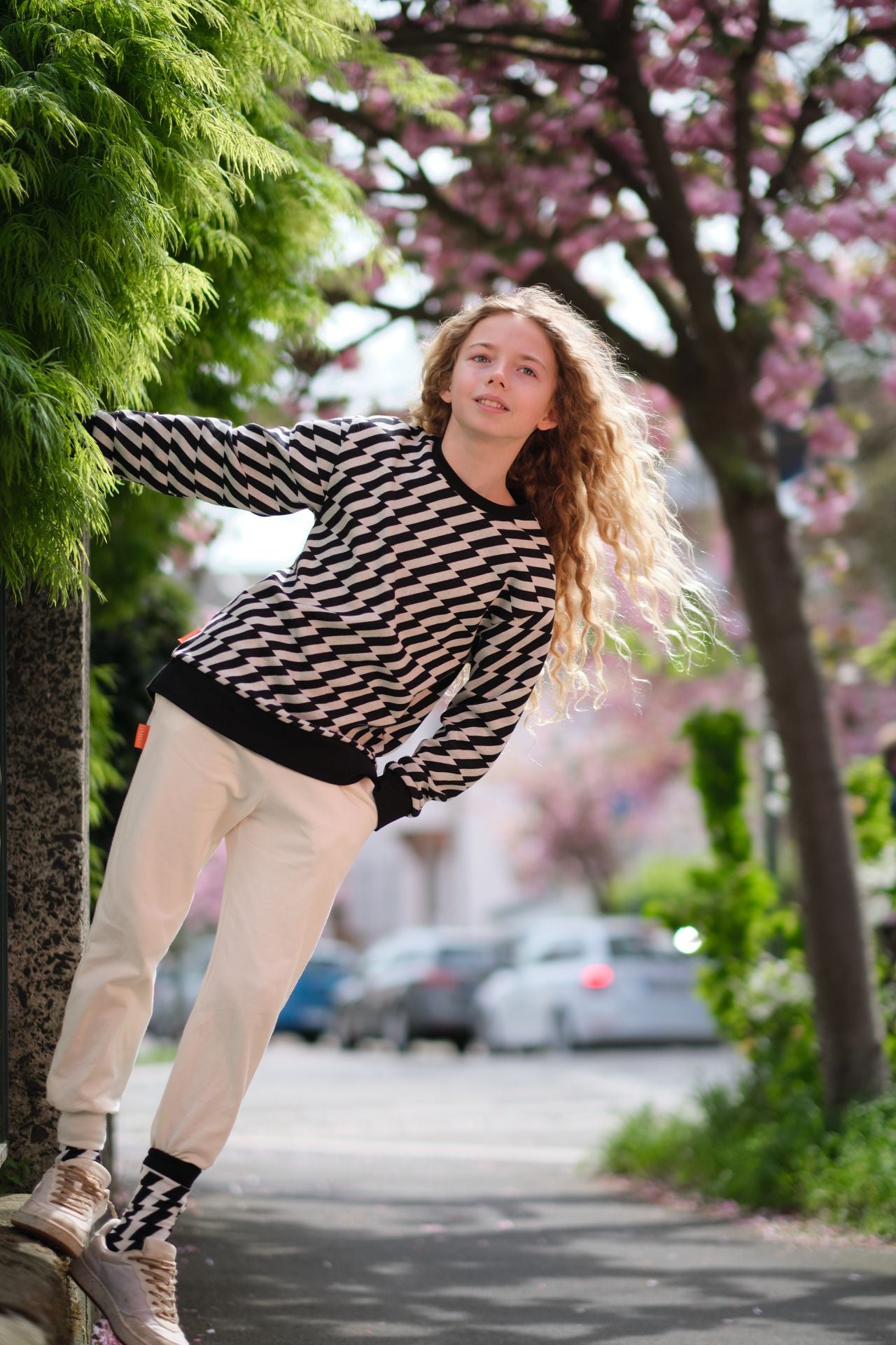 Mit spezieller Stricktechnik für einen atemberaubenden Effekt. Hergestellt aus GOTS-zertifizierter Biobaumwolle in Deutschland für Hautfreundlichkeit und Umweltverträglichkeit. Trendiges Design und einzigartiger 3D-Effekt machen jedes Outfit zum Hingucker, und lassen Dein Kind aus der Masse herausstechen.